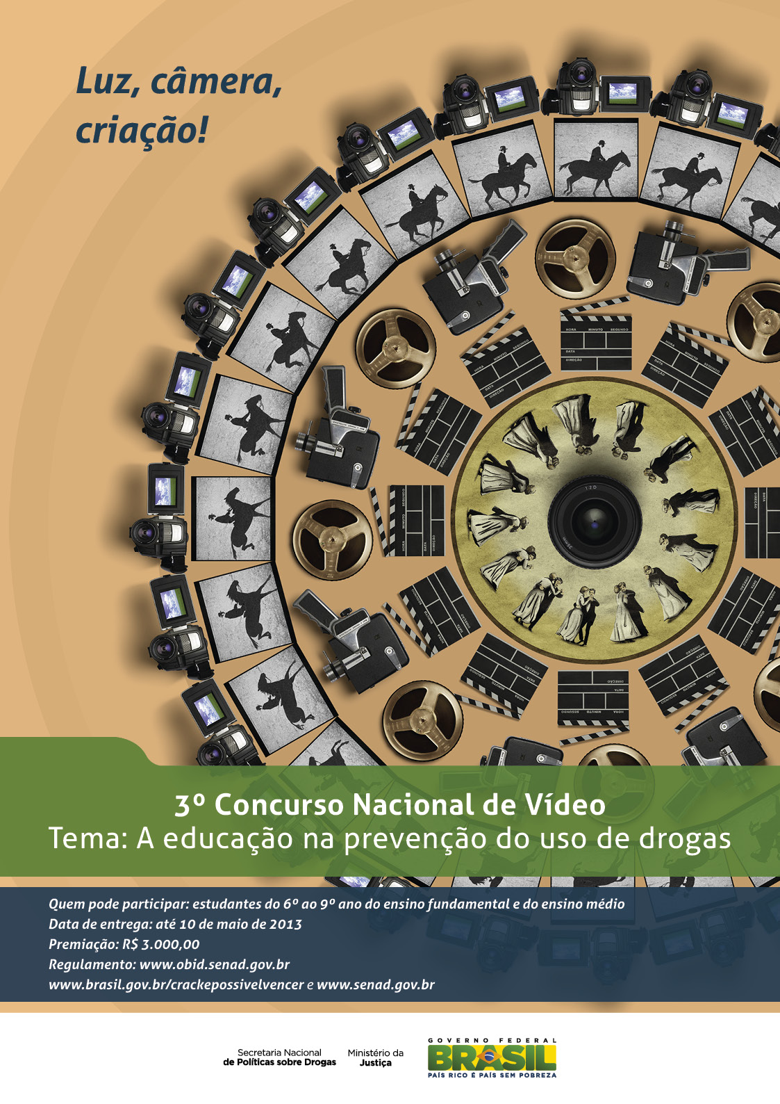 A Secretaria Nacional de Políticas sobre Drogas (Senad), do Ministério da Justiça, está promovendo o 14º Concurso Nacional de Cartazes, direcionado a estudantes do 2º ao 5º ano do Ensino Fundamental de 9 anos; o 3º Concurso Nacional de Vídeo, direcionado a estudantes do 6º ao 9º ano do Ensino Fundamental de 9 anos e Ensino Médio; o 11º Concurso Nacional de Fotografia e o 11º Concurso Nacional de Jingle, ambos dirigidos à população em geral. Este ano os concursos têm como tema "A Educação na Prevenção do Uso de Drogas".