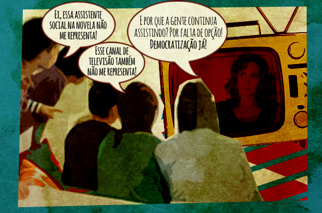 Por que ao invés de reclamar somente sobre a forma pela qual a profissão é retratada, não se questiona a programação da televisão brasileira? Se nossas telecomunicações não fossem dominadas por um oligopólio de um número reduzido de famílias abastadas, talvez você, assistente social, tivesse a oportunidade de assistir a outros programas de televisão e ter até suas reclamações ouvidas. Mas da forma como a coisa está hoje (e já são mais de 50 anos assim, tendo em vista que o Código Brasileiro de Telecomunicações é de 1962), a Globo e outras emissoras vão continuar empurrando sua programação “goela abaixo”, sem qualquer chance de participação popular.