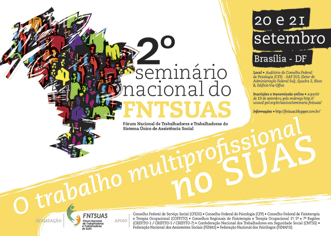 Com esse intuito, o Fórum Nacional de Trabalhadores e Trabalhadoras do SUAS realizará, nos dias 20 e 21 de setembro, em Brasília (DF), o 2º Seminário do FNTSUAS. O evento é voltado para as pessoas que trabalham no SUAS, de todas as áreas e escolaridade, e para aquelas que participam dos fóruns municipais e estaduais, dos conselhos de assistência social ou que exercem representação em outros espaços de discussão da política de assistência social nas instâncias de organização da classe trabalhadora.