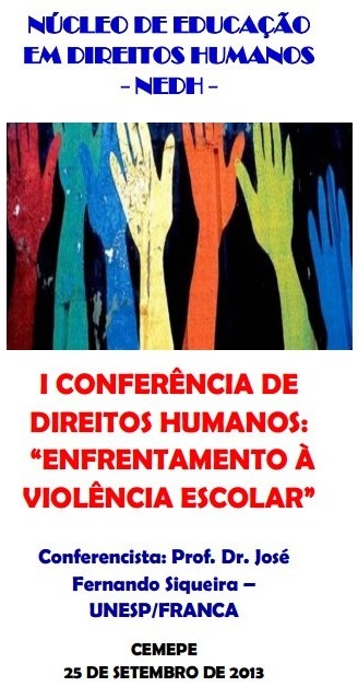 A 1º Conferência de Direitos Humanos – Enfrentamento à Violência Escolar acontece em Uberlândia, no dia 25 de setembro, com o objetivo de traçar estratégias de ação para o combate à violência no cotidiano escolar.