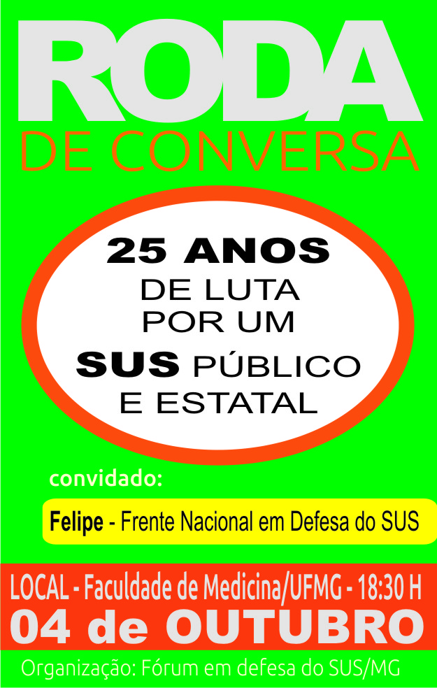 O Fórum em Defesa do SUS e Contra as Privatizações de Minas Gerais convida para uma roda de conversa com Felipe Monte Cardoso, médico de família e da comunidade da Unicamp e militante do Fórum Popular de Saúde de SP/Campinas. A ideia é bater um papo sobre os desafios do Sistema Único de Saúde (SUS), em especial a relação público-privado que tanto o prejudica e, por outro, discutir também a importância de pautar junto à sociedade uma concepção ampliada de saúde.