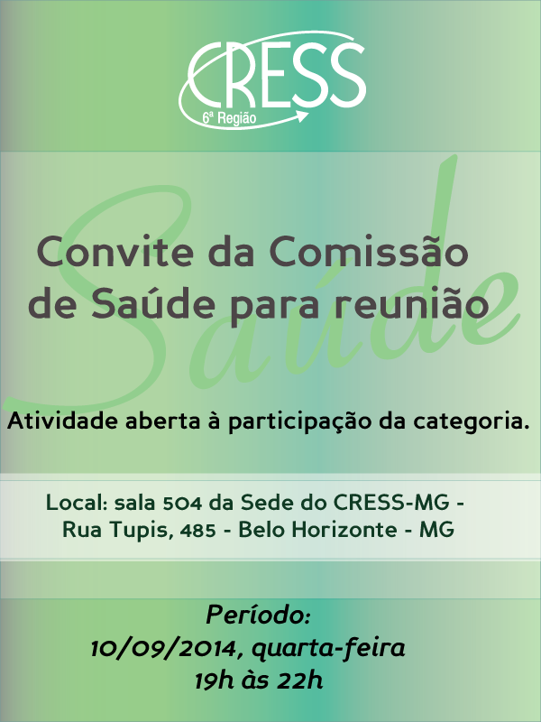 Local: Auditório do CRESS-MG – Rua Tupis, 485, Sala 504 – Centro – Belo Horizonte.