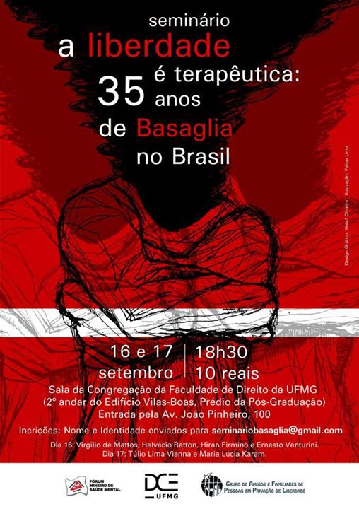 Nos dias 16 e 17, a Faculdade de Direito da UFMG realizará, em BH, o Seminário A liberdade é terapêutica – 35 anos de Basaglia no Brasil, para lembrar os 35 anos da chegada ao Brasil das ideias e do trabalho do psiquiatra italiano Franco Basaglia, responsável por promover importante reforma no sistema de saúde mental italiano no século passado.