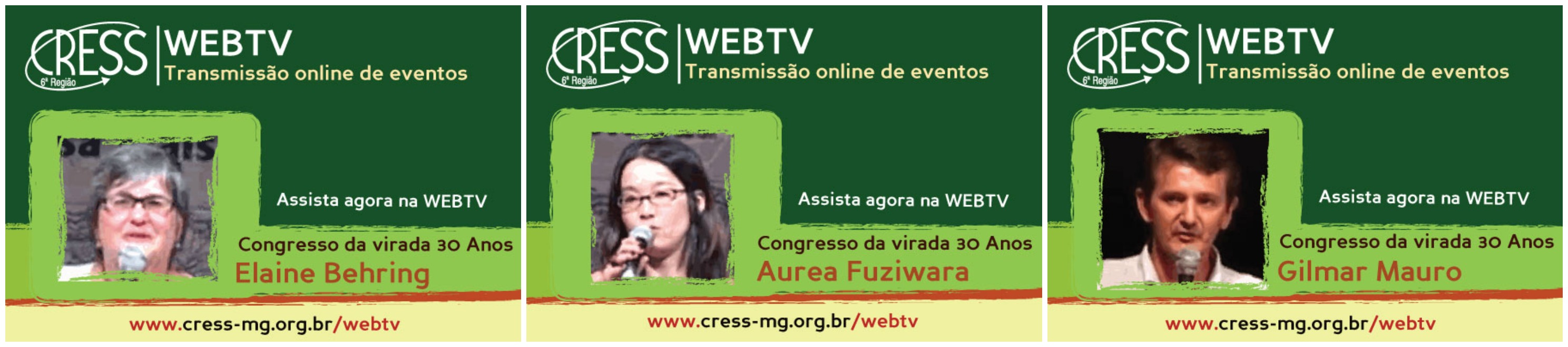 Os vídeos desse Seminário já estão sendo enviados para a Web TV do CRESS-MG. São mesas com a participação assistentes sociais, como Elaine Behring, e de áreas relacionadas com as bandeiras dos trabalhadores, como representantes do MST e CSP Conlutas.