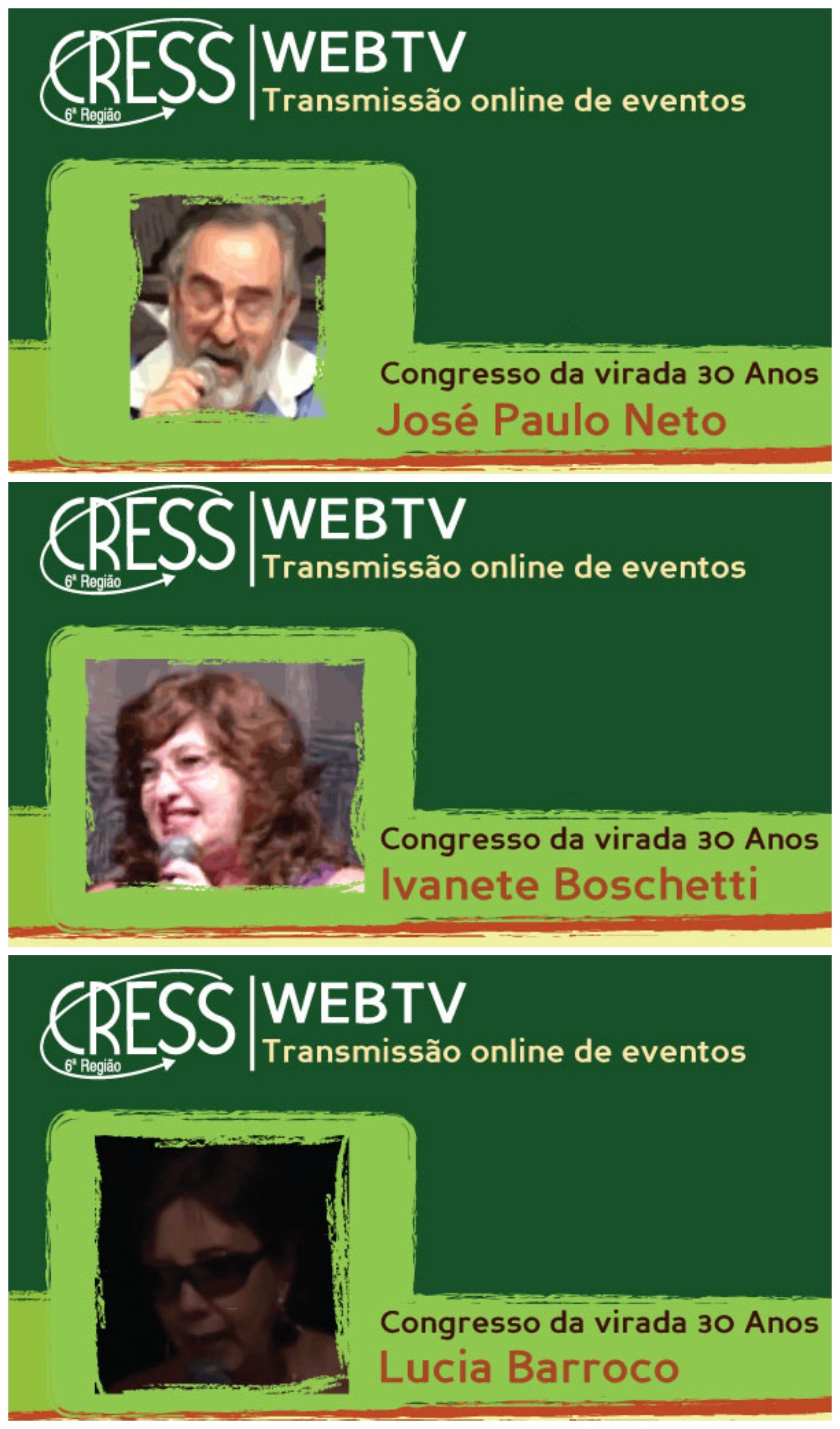 Em breve, a WEB TV será atualizada com mais conteúdos do Seminário Nacional dos 30 anos de Congresso da Virada, como palestras das professoras Bia Abramides, Maria Iamamoto, Maria Inês Bravo e Maria Lucia Barroco entre outros grandes nomes do Serviço Social.