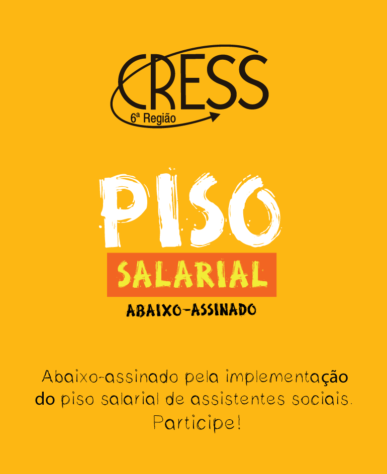 O CRESS-MG convoca toda a categoria para assinar uma petição online referente ao Projeto de Lei pelo piso salarial de assistentes sociais. O abaixo-assinado é uma iniciativa do CFESS e já conta com mais de 42 mil assinaturas. A ideia é chegar a 50 mil assinaturas e então encaminhá-lo ao Congresso Nacional, como forma de pressionar a aprovação e a sanção do PL.