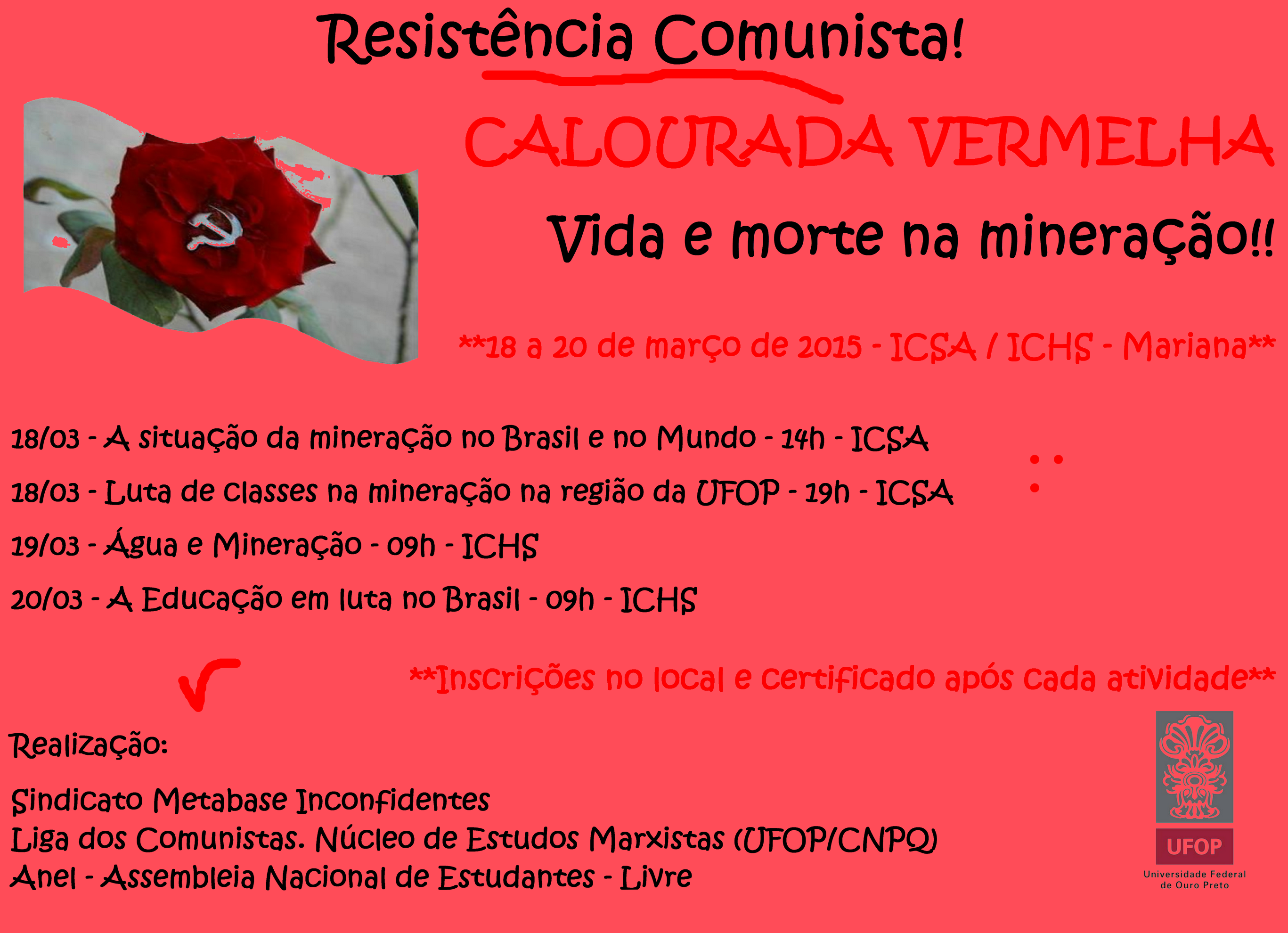 Instituto de Ciências Sociais Aplicadas da Universidade Federal de Ouro Preto (ICSA/Ufop) – Rua do Catete, 166 – Centro – Mariana.