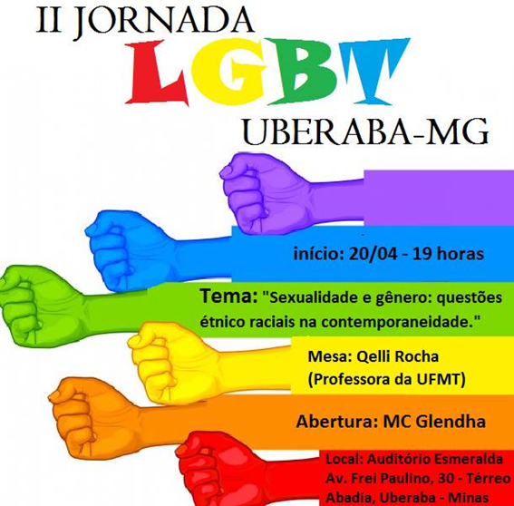 A II JORNADA LGBT-UBERABA, convida para a mesa de abertura "Sexualidade e gênero; Questões étnico raciais na contemporaneidade", ministrada pela professora da UFMT e militante do Coletivo Feminista Ana Montenegro, Qelli Rocha. Haverá também a apresentação artística da MC Glendha.