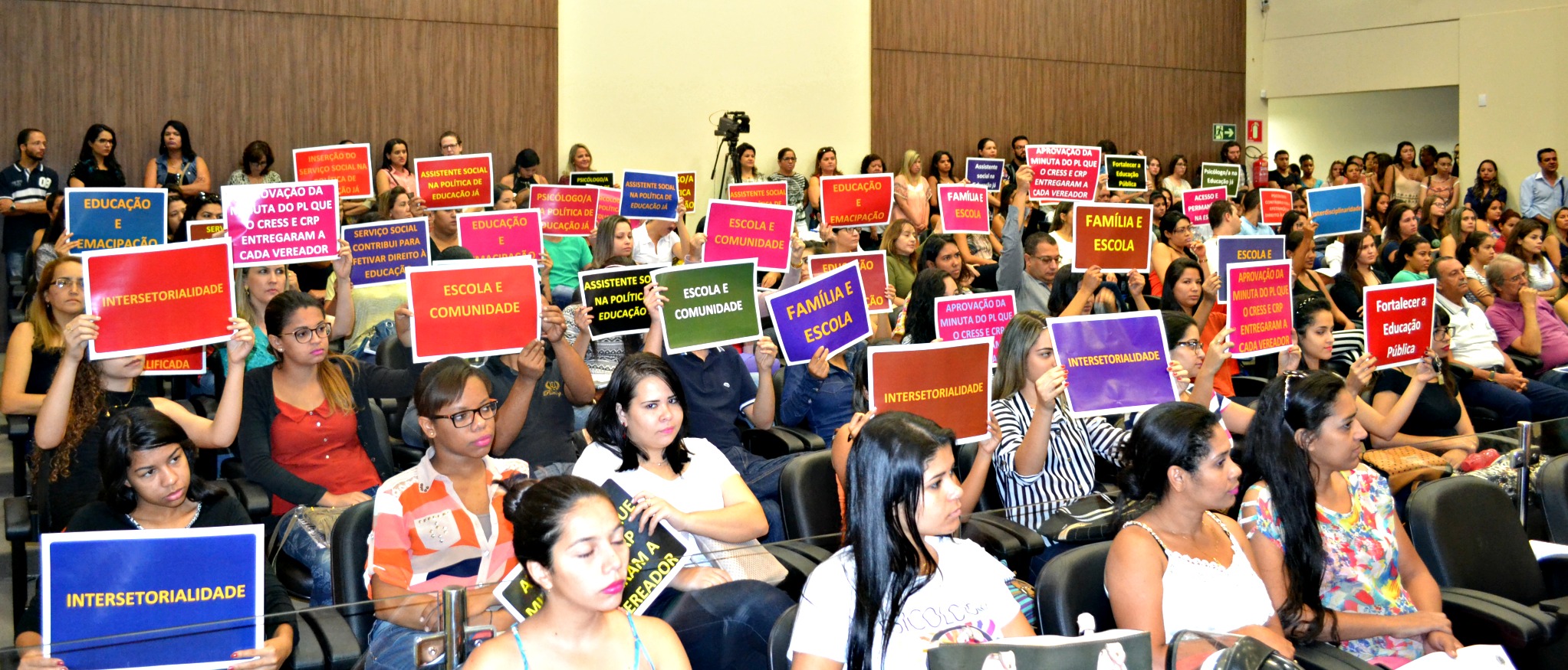 Assistentes sociais e psicólogas/os lotaram auditório da Câmara Municipal de Montes Claros durante Audiência Pública que tratou do Projeto de Lei 29 que estabelece o acompanhamento psicossocial nas escolas do município. O evento, ocorrido no dia 18 de agosto, foi proposto após a identificação de algumas falhas no PL, como a não garantia de que o serviço seja executado, já que a lei é apenas autorizativa, além de não prever a realização de um concurso público para a contratação das e dos profissionais que comporão estas equipes multidisciplinares, dentre outras. O momento teve, ainda, a participação da professora Eliana Bolorino, do curso de Serviço Social da Unesp/Franca, e especialista no âmbito do Serviço Social na Educação.