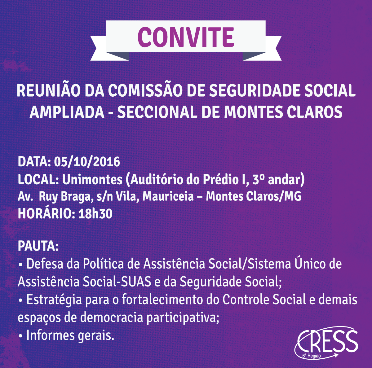 Convite: Reunião da Comissão de Seguridade Social Ampliada – Seccional Montes Claros