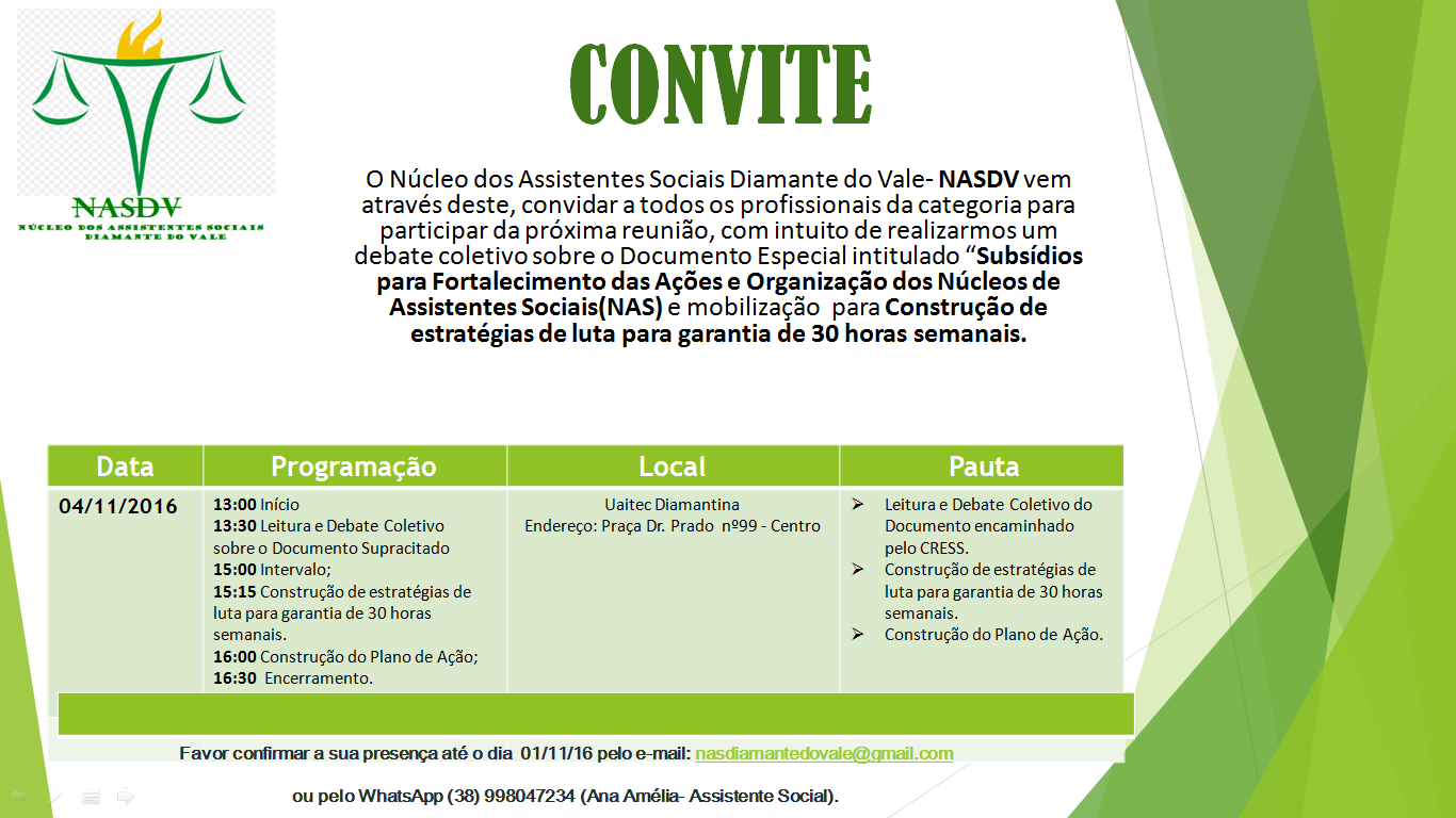 Interessados devem confirmar a presença até o dia  01/11/16 pelo e-mail: [email protected]