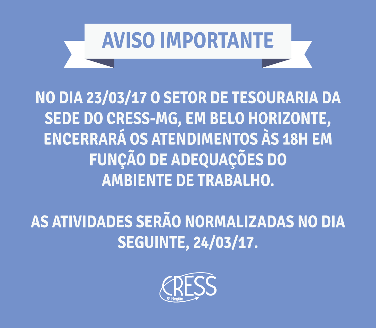 Funcionamento do Setor de Tesouraria no dia 23/03
