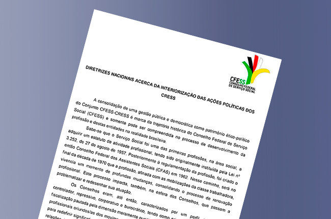 É importante destacar que estas diretrizes foram elaboradas de modo a fortalecer e assegurar a unidade das ações políticas de nucleação/interiorização dos CRESS e consolidar uma gestão democrática das entidades, bem como fortalecer a relação entre conselhos profissionais e assistentes sociais em todo o país.