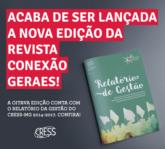 A nova Revista Conexão Geraes traz um completo Relatório da Gestão do CRESS-MG (2014-2017). Neste ano em que a gestão Seguindo na Luta: Em Defesa da Categoria e do Fortalecimento do Projeto Ético-Político se despede da direção do Conselho, faz-se necessário pontuar as ações desses três anos seguindo firme em defesa da categoria e do seu projeto, na luta contra os retrocessos nas políticas sociais, em defesa dos direito sociais e da classe trabalhadora e contra o conservadorismo que avança em nossa sociedade.