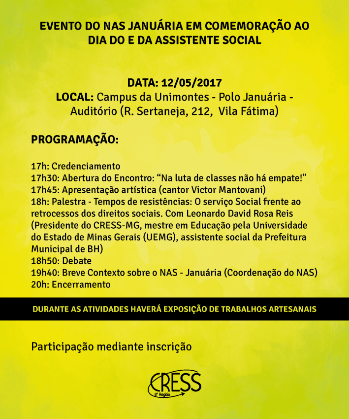 Clique aqui e preencha o formulário de inscrição para o Evento do NAS Januária!