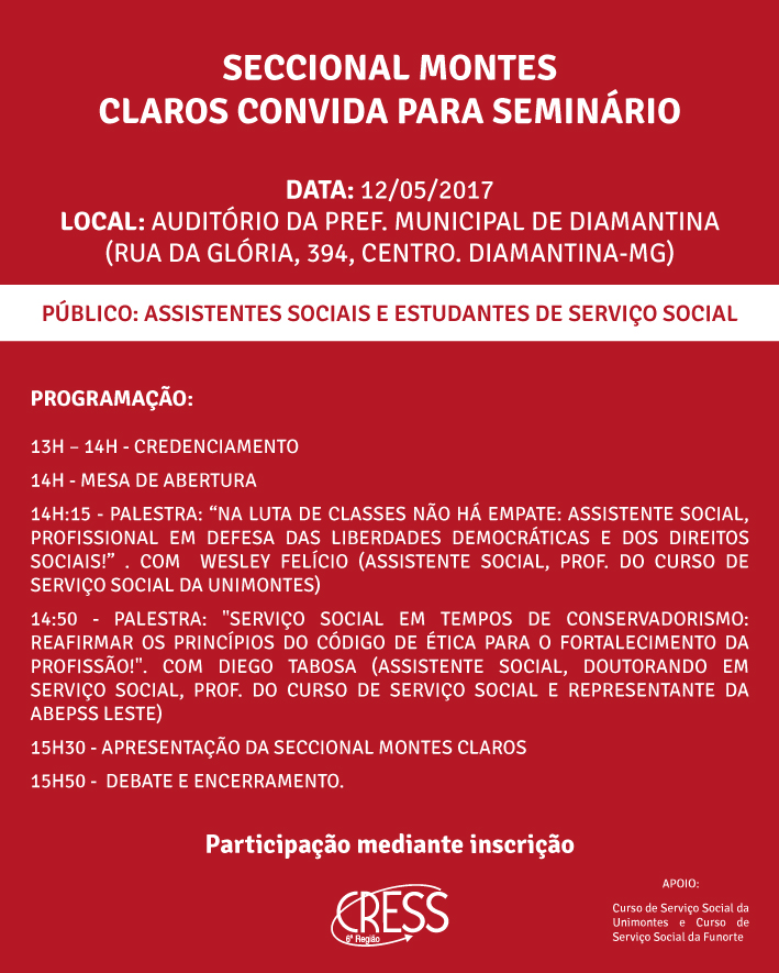 Clique aqui e preencha o formulário de inscrição para o Seminário em Diamantina!