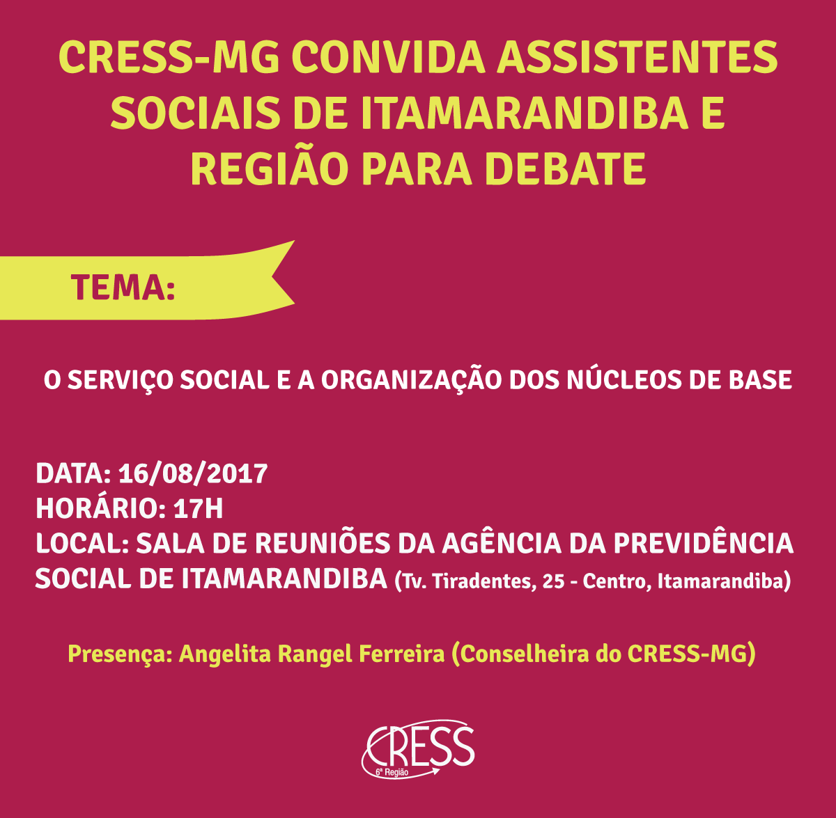 CRESS-MG convida assistentes sociais de Itamarandiba e região para Debate