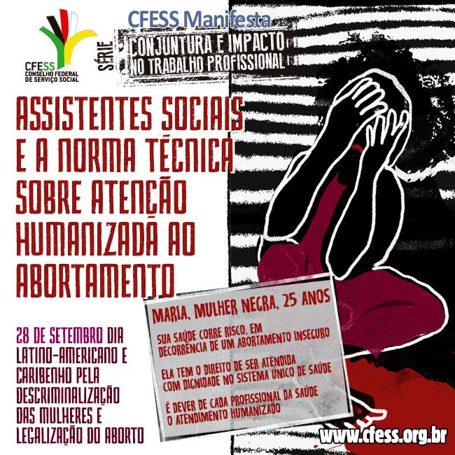 Mais uma vez, sem preconceitos ou questões de fundo religioso, o CFESS traz o tema para o debate entre a categoria de assistentes sociais, na dimensão da ética, da liberdade no âmbito do trabalho profissional. O novo CFESS Manifesta, mais uma edição da série Conjuntura e Trabalho Profissional, debate, de forma didática, a Norma Técnica sobre a Atenção Humanizada ao Abortamento, do Ministério da Saúde (2005) – clique aqui para acessar.