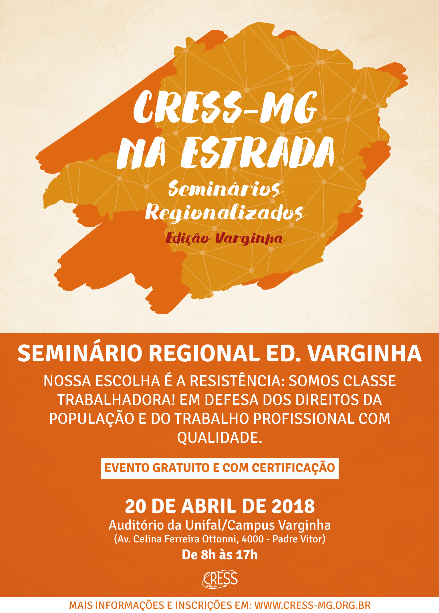 Já estão abertas as inscrições para o Atividade Regionalizada – Edição Sul do Minas, que acontece em Varginha, no dia 20 de abril. O evento é gratuito e integra o Projeto CRESS-MG na Estrada – Atividades Regionalizadas, que tem como objetivo a interiorização das ações de formação permanente do Conselho, com vistas à valorização da profissão e contribuindo para o aperfeiçoamento técnico, teórico e político das e dos assistentes sociais.