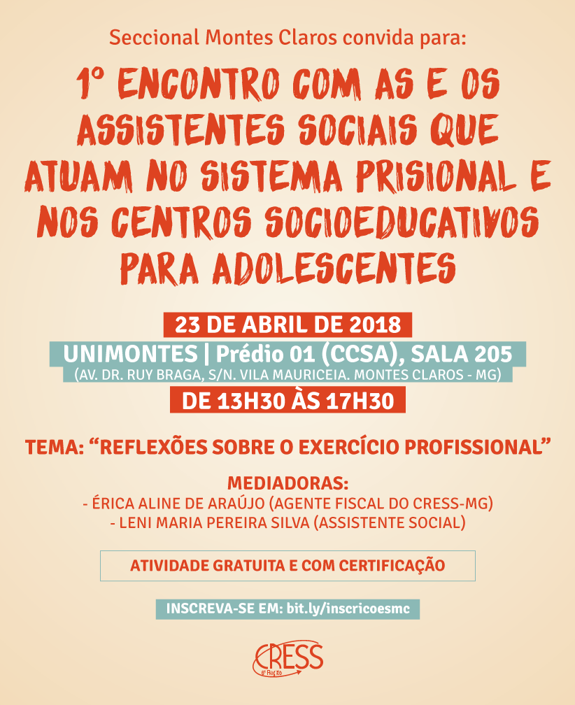 Seccional Montes Claros convida para 1º Encontro com as e os Assistentes Sociais que Atuam no Sistema Prisional e nos Centros Socioeducativos para Adolescentes