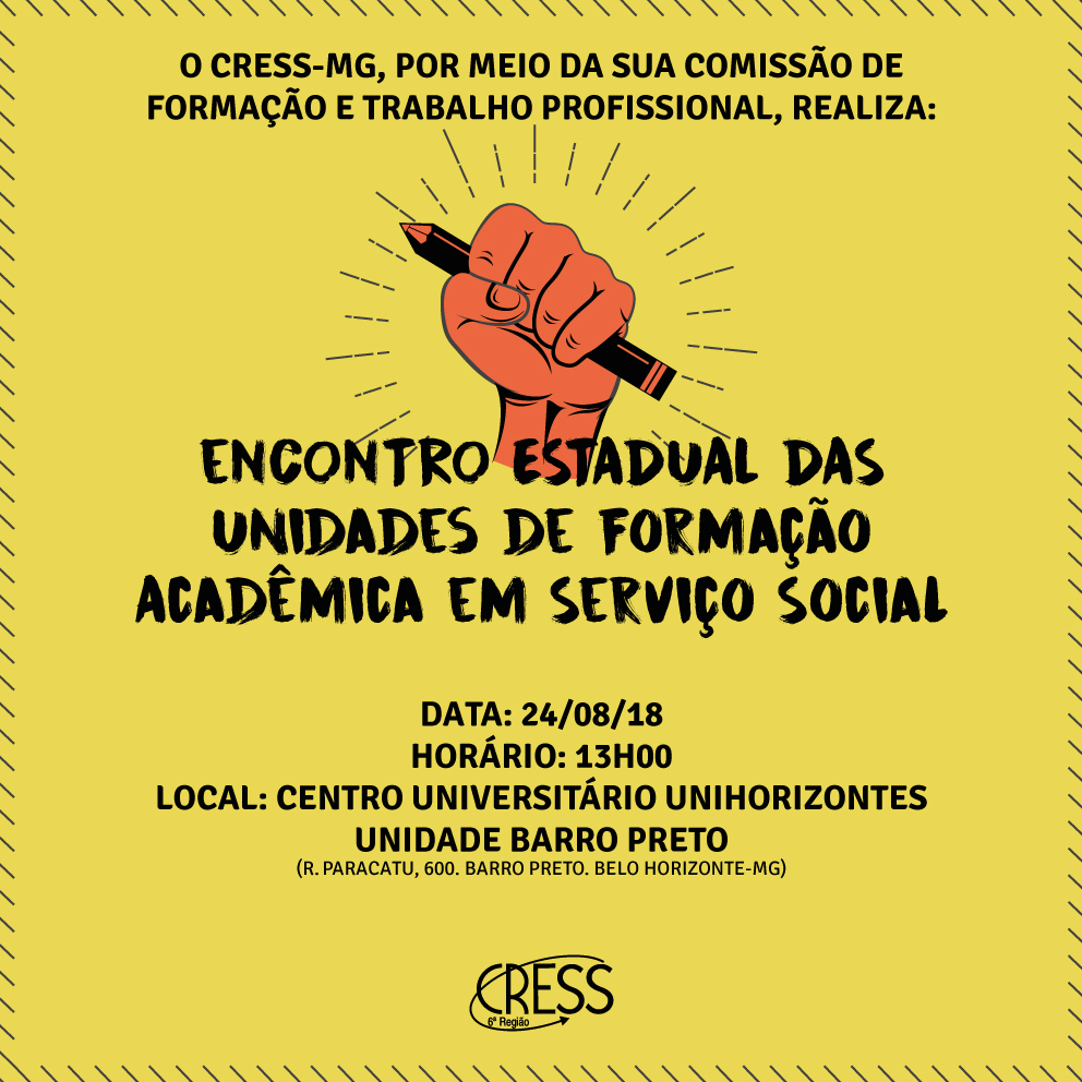 Para garantirmos a participação de todas as Unidades de Formação Acadêmica do Estado, solicitamos que nos seja encaminhada através do e-mail [email protected], até o dia 20 de julho de 2018, lista com as possíveis três representações desta unidade, sendo: Coordenador de curso ou representante, coordenador de estágio ou representante, representação discente e representação de supervisores de campo (se houver).