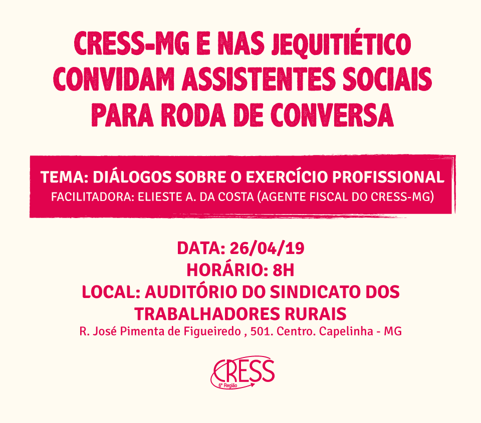 CRESS-MG e NAS Jequitiético convidam para roda de conversa em Capelinha-MG