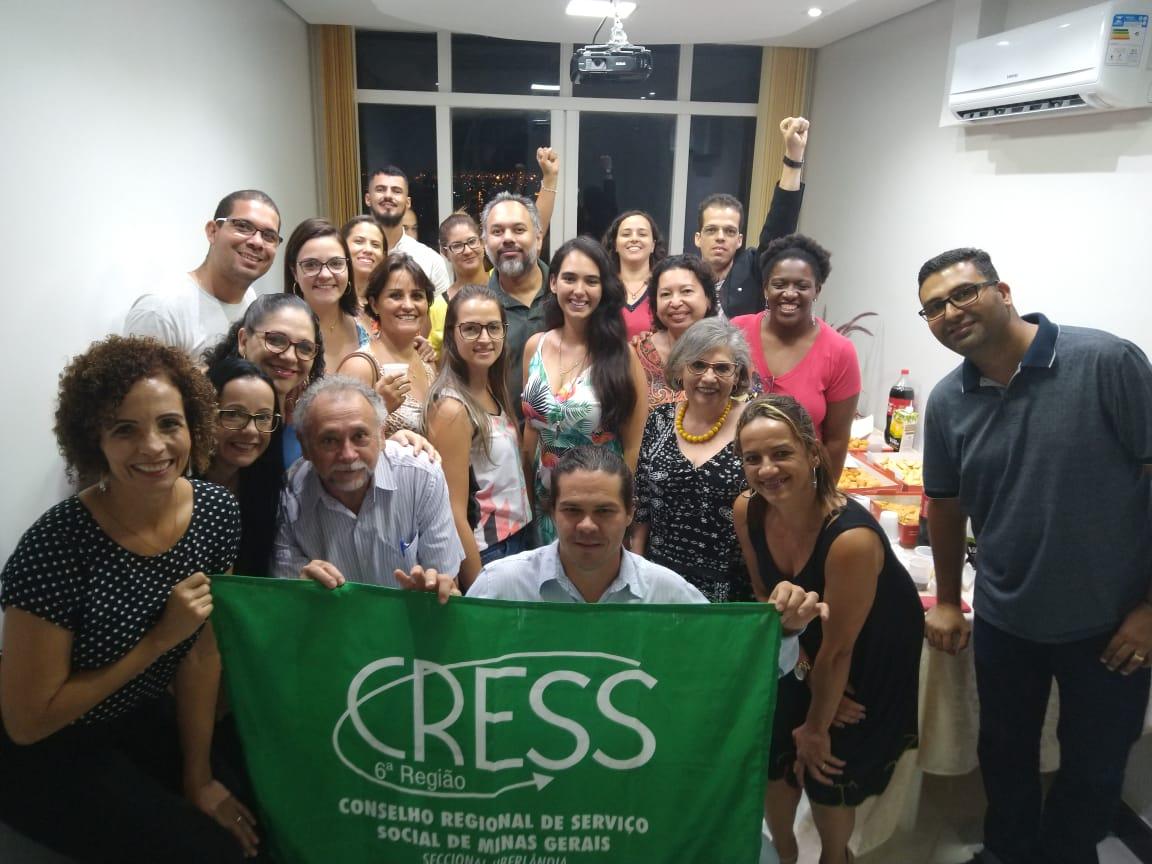Encontro CRESS-MG Sede e Seccional de Uberlândia, em Uberlândia uma ação descentralizada, com a presença das trabalhadoras e trabalhadores do CRESS-MG: Jean Carlos Brito, coordenador administrativo, Denise Cunha, coordenadora técnica, Mayco Boaventura, encarregado da Seccional Uberlândia, Taiana Schwitzky, auxiliar administrativa, Marcelo Rocha, agente fiscal. Da gestão, estavam presentes a presidenta do Conselho, Julia Restori, o conselheiro Marcelo Amando e a diretoria da Seccional, composta por Rodrigo Valadares, Yasmine Soares, Ariadne Pimenta e Deivid Palmezoni.