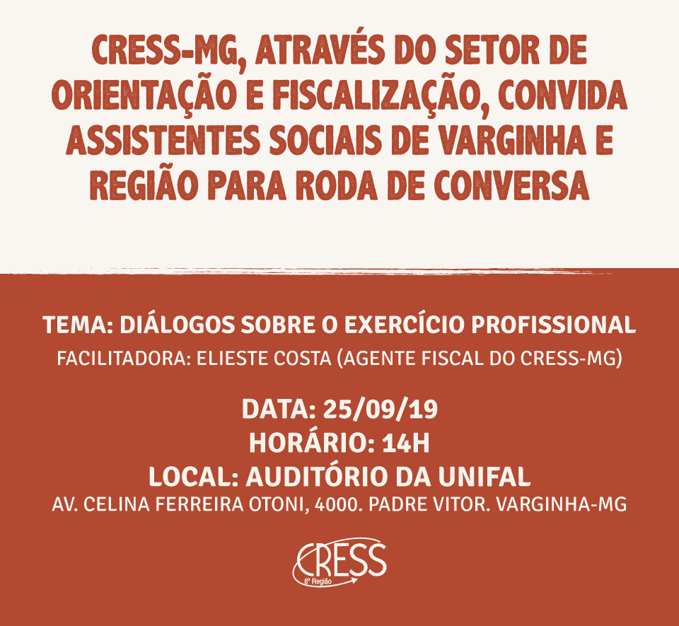 CRESS-MG promove roda de conversa em Varginha no dia 25/09. Participe!