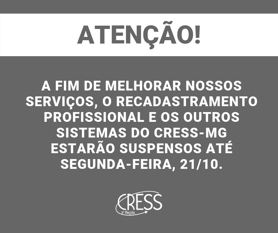 Sistemas do CRESS-MG estarão suspensos até segunda, 21/10