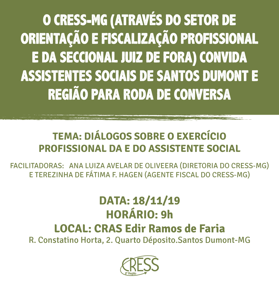CRESS-MG realiza roda de conversa sobre Exercício Profissional da e do Assistente Social em Santos Dumont