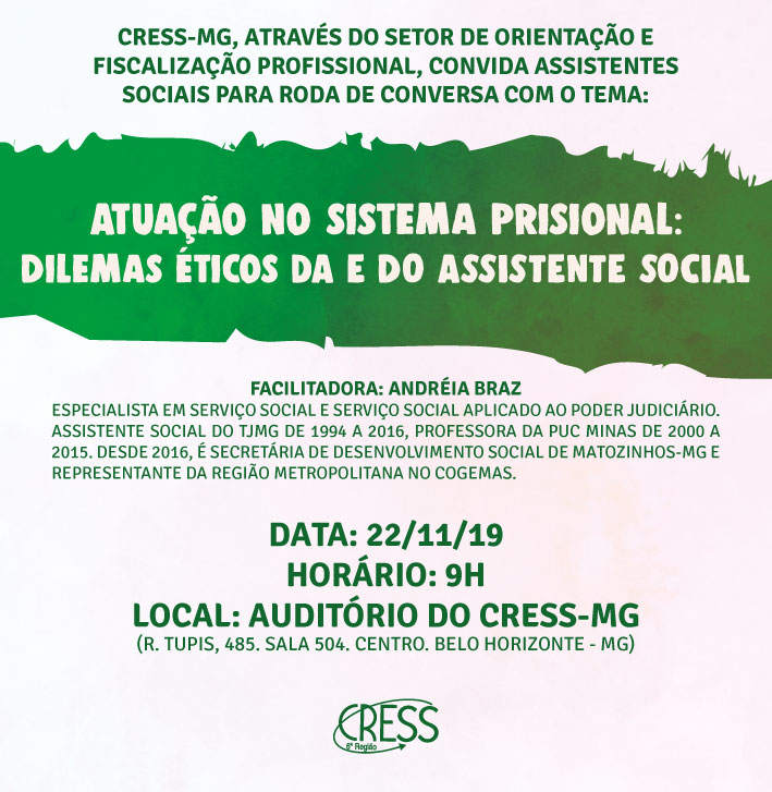 Atuação da e do Assistente Social no Sistema Prisional é tema de roda de conversa do CRESS-MG