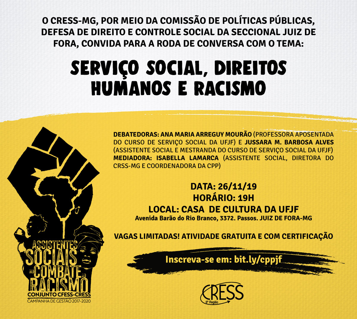 Serviço Social, Direitos Humanos e Racismo será tema de atividade em Juiz de Fora