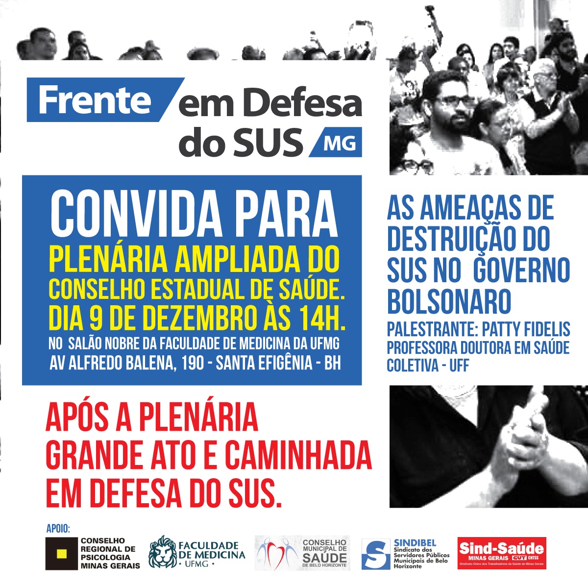 Frente Mineira em Defesa do SUS promove plenária e caminhada, em BH