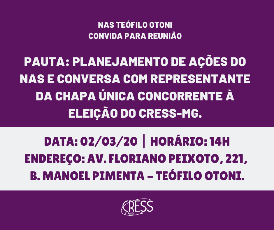 NAS Teófilo Otoni convida para reunião, na segunda-feira, 02/03