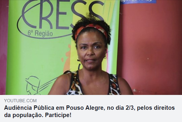 Assista a presidenta do CRESS-MG, Ana Maria Bertelli, convidando para o ato.