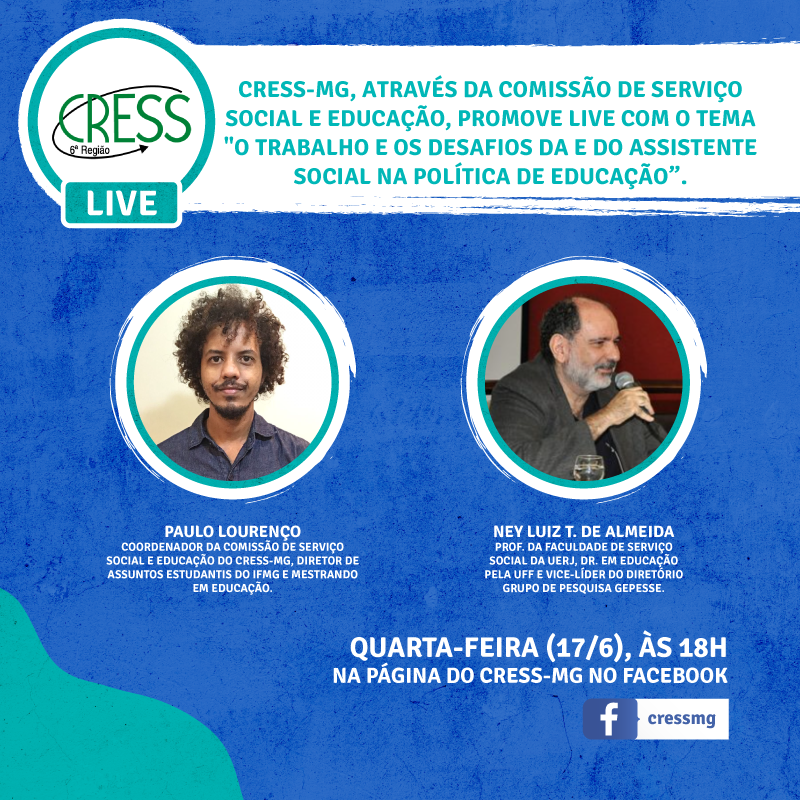 Para fortalecer a luta por uma educação gratuita e de qualidade para todas e todos, a Comissão de Educação do CRESS-MG foi rearticulada e conta com a sua participação, assistente social mineira/o, que atua nos mais diversos processos de trabalho da área (escolas públicas/privadas, no âmbito da gestão, em movimentos sociais, em coordenação e projetos sociais vinculados a educação).