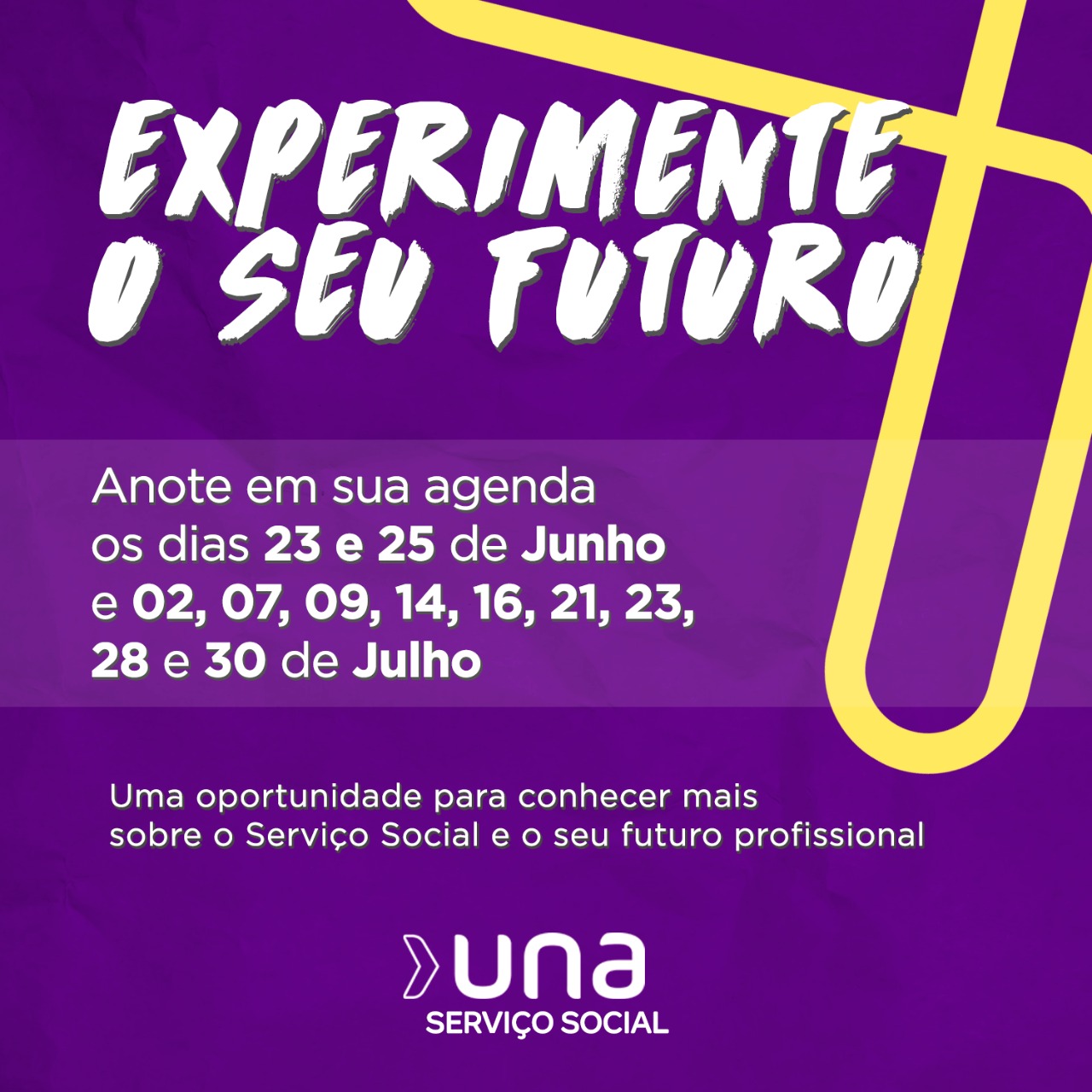 O Curso de Serviço Social e o Núcleo de Estágio do Centro Universitário Una, de Belo Horizonte, está com inscrições abertas para o projeto “Experimente o seu futuro”, uma oportunidade de conhecer mais sobre o Serviço Social e os espaços de atuação das e dos assistentes sociais.