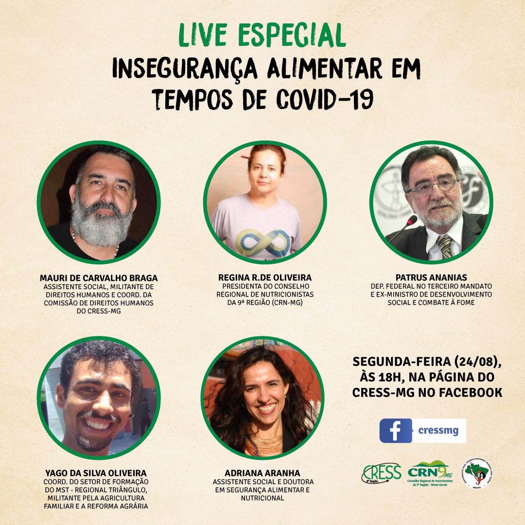No dia 24 de agosto, às 18 horas, será realizada a live “SEGURANÇA ALIMENTAR EM TEMPOS DE COVID-19”.
