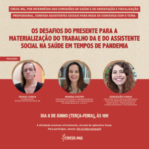 Venha debater com a gente sobre o tema Os Desafios do Presente Para a Materialização do Trabalho da e do Assistente Social na Saúde em Tempos de Pandemia!