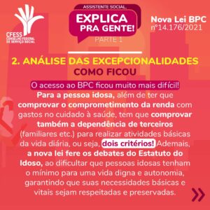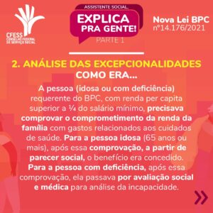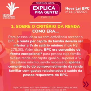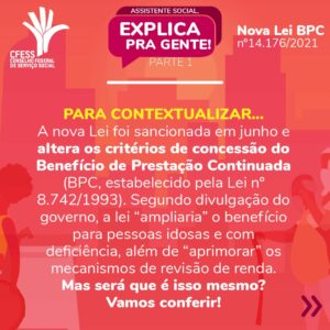 Por isso o CFESS lança hoje uma série especial sobre o tema: “Assistente social, explica pra gente! Será mesmo que a nova lei do BPC amplia o benefício?”