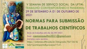Vem aí a 5ª Semana de Serviço Social da UFTM. Confira a programação e os prazos para envio de trabalhos!