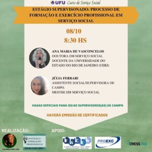 O curso de Serviço Social da Universidade Federal de Uberlândia (UFU) promove, com o apoio do CRESS-MG, o projeto de extensão “Estágio e Formação Profissional”.