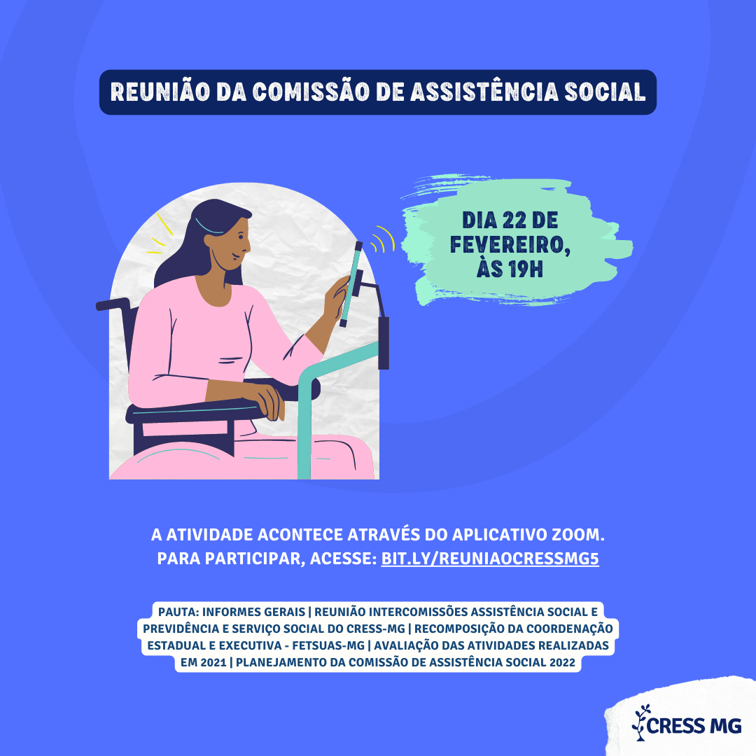 Terça-feira que vem (22/02), às 19h, tem reunião da Comissão de Assistência Social do CRESS-MG!