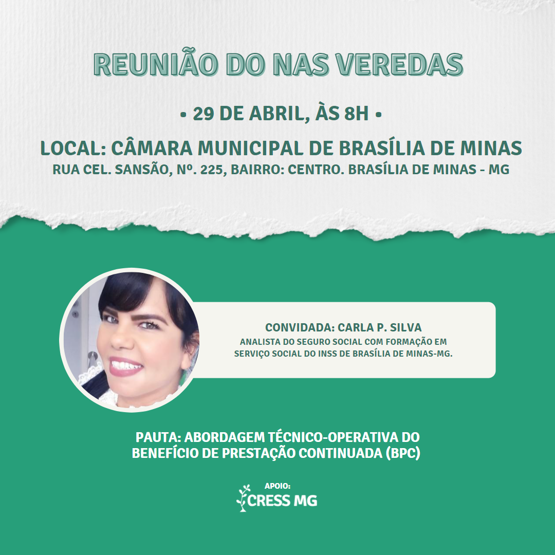 Se você está em Brasília de Minas e região, aproveite a oportunidade e venha debater sobre Abordagem Técnico-operativa do BPC.