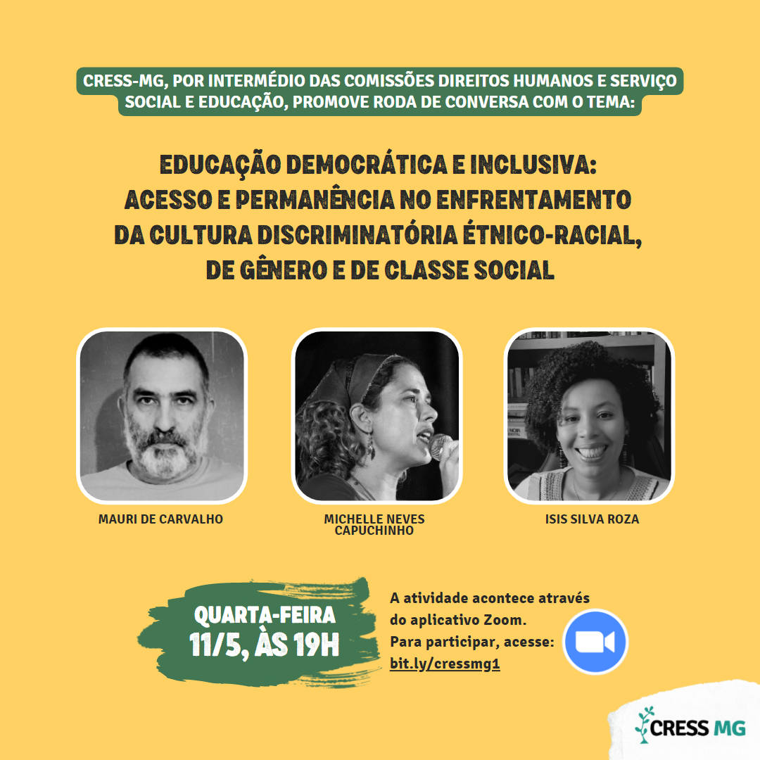 A atividade, que acontece na próxima quarta-feira (11/5), será mediada pelo coordenador da Comissão de Direitos Humanos do Conselho, Mauri de Carvalho, e conta com a participação especial de: