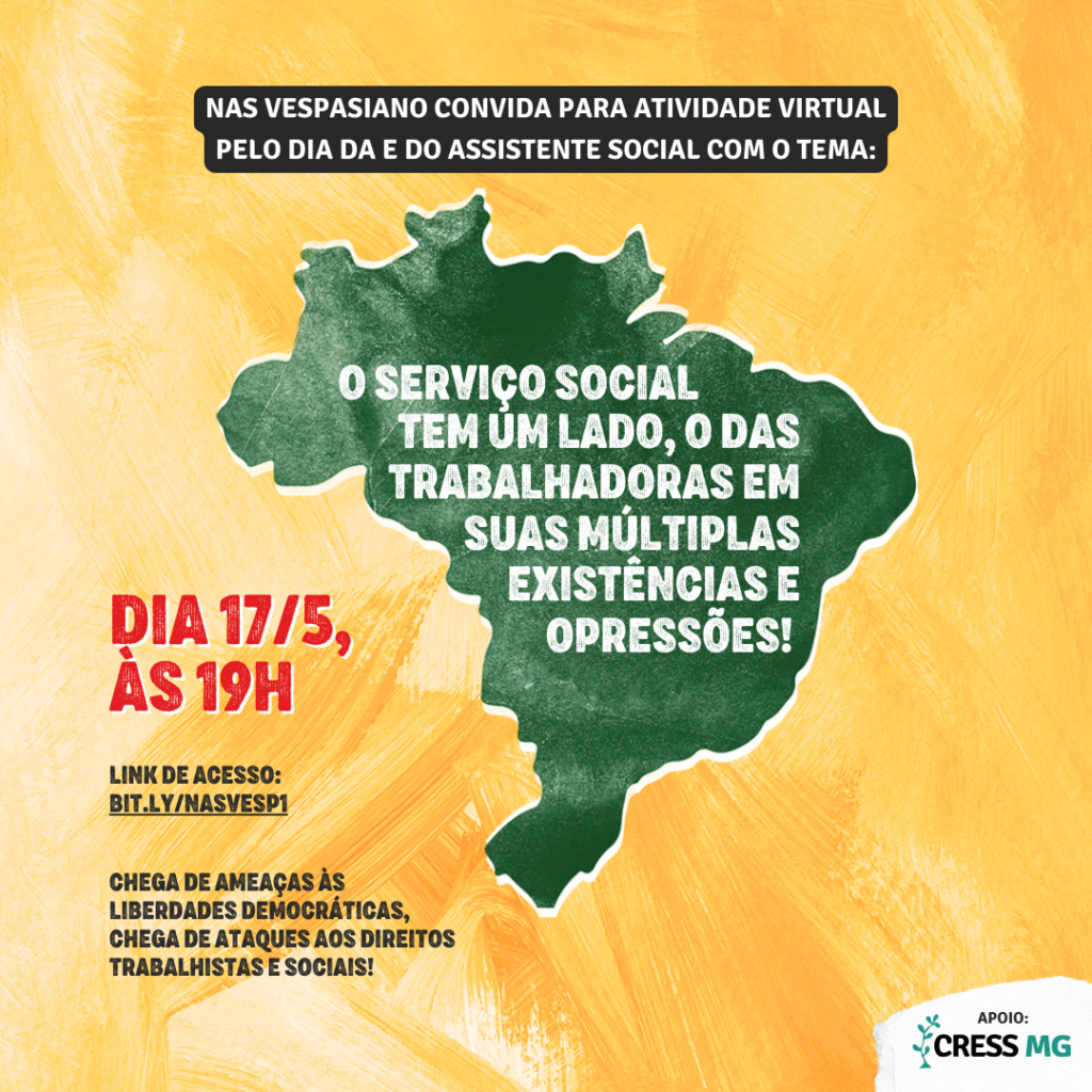 NAS Vespasiano convida para atividade virtual pelo Dia da e do Assistente Social