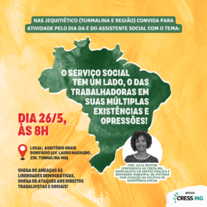 Maio é o nosso mês e, por isso, o NAS JEQUITIÉTICO convida assistentes sociais de Turmalina e região para atividade com o tema “O Serviço Social tem um lado, o das trabalhadoras em suas múltiplas existências e opressões”.