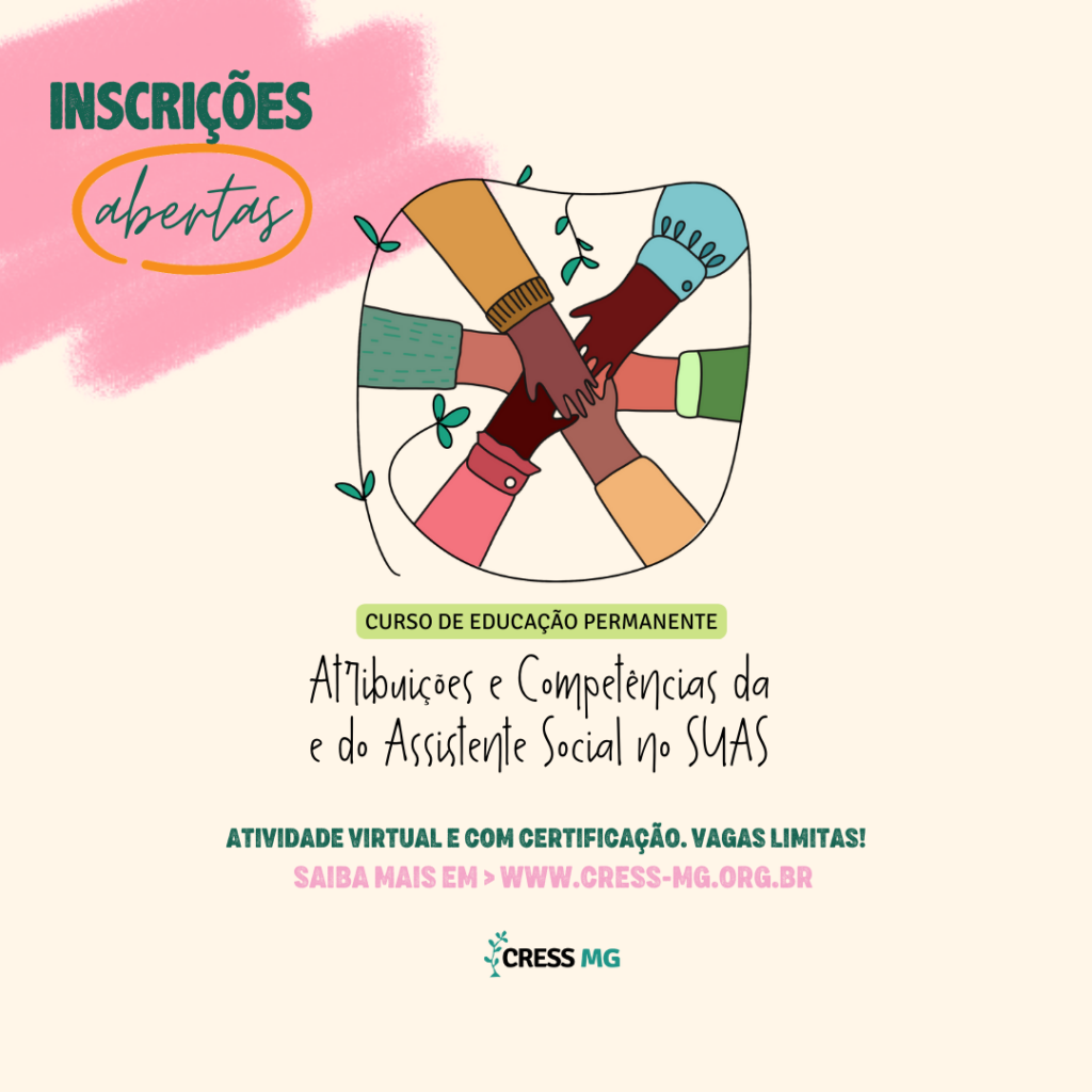 Estão abertas as inscrições para mais um Curso de Educação Permanente do CRESS-MG e, dessa vez, voltado para qualificar a atuação profissional de assistentes sociais que atuam na política de Assistência Social.