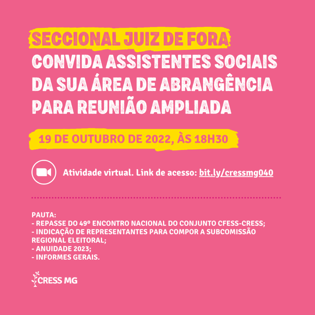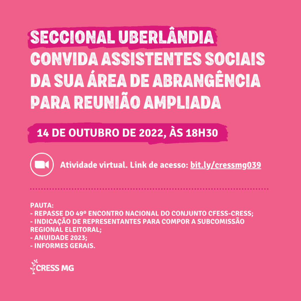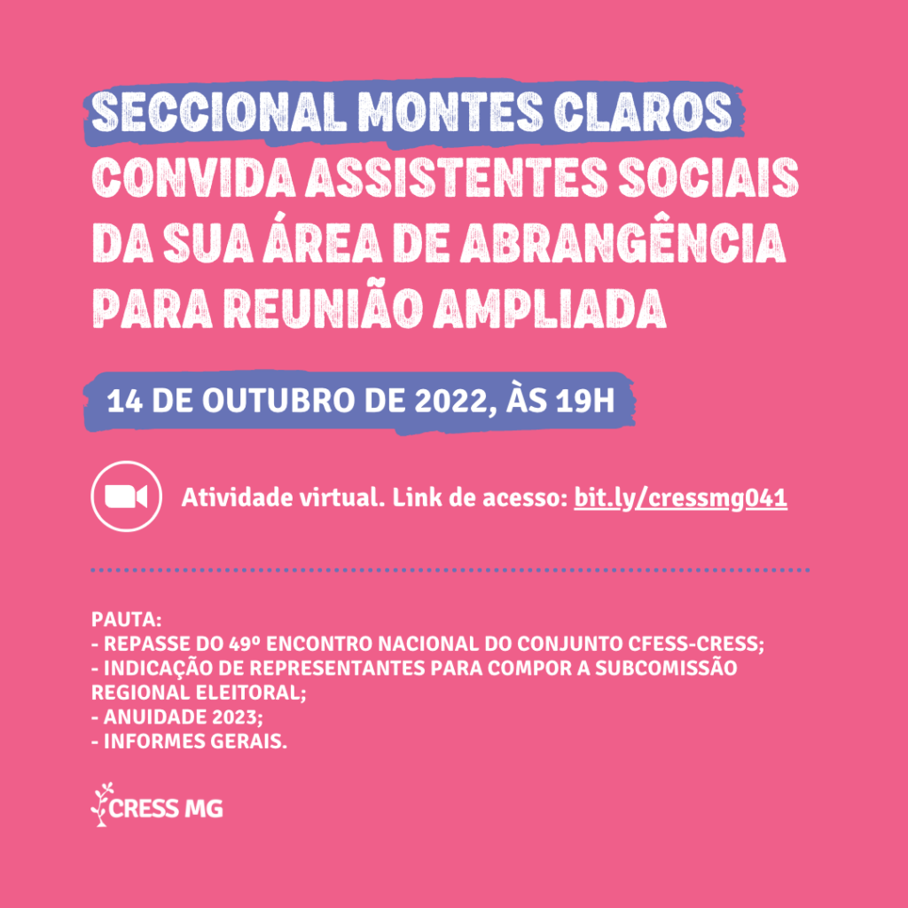 As seccionais Juiz de Fora, Montes Claros e Uberlândia do CRESS-MG promoverão reuniões ampliadas com as e os assistentes sociais que estão em suas áreas de abrangências.