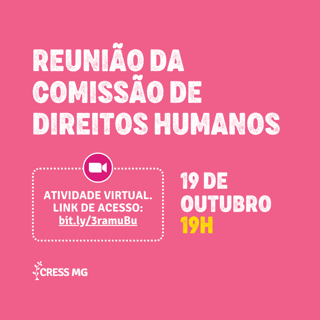 Quarta-feira que vem (19/10), tem reunião virtual da Comissão de Direitos Humanos do CRESS-MG e você é nossa/o convidada/o especial.